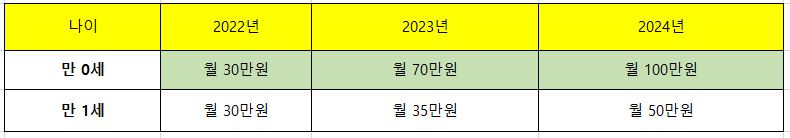 2023년 부모급여 신청방법, 어린이집, 소급적용 2023년부터 저출산 극복을 위해 보건복지부에서 부모급여를 실시합니다. 만 0세 자녀의 가정은 최대 70만원, 만 1세 자녀의 가정은 최대 35만원 지급으로 2023년 부모급여 신청방법과 어린이집 적용 시 받게되는 지급액 및 소급적용 여부에 대해서 알아보겠습니다. 2023년 부모급여 신청방법 1. 신청시기 2023년 01월 04일 수요일부터 부모급여를 신청할 수 있습니다. 2. 2023년 부모급여 대상장 및 신청자 2023년 부모급여는 부모의 소득이나 재산 등 상관없이 24개월 이하의 아동을 둔 모든 부모에게 현금으로 지급됩니다. 대상자 만 0세 아동 ~ 만 1세 아동 신청자 만 1세 이하의 실질적인 보호자 ( 여기서 실질적인 보호자라 함은 부모, 조부모..
