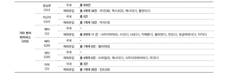 이를 주요 변이 바이러스와 기타 변이 바이러스로 분류로 하고 있는 상태입니다.